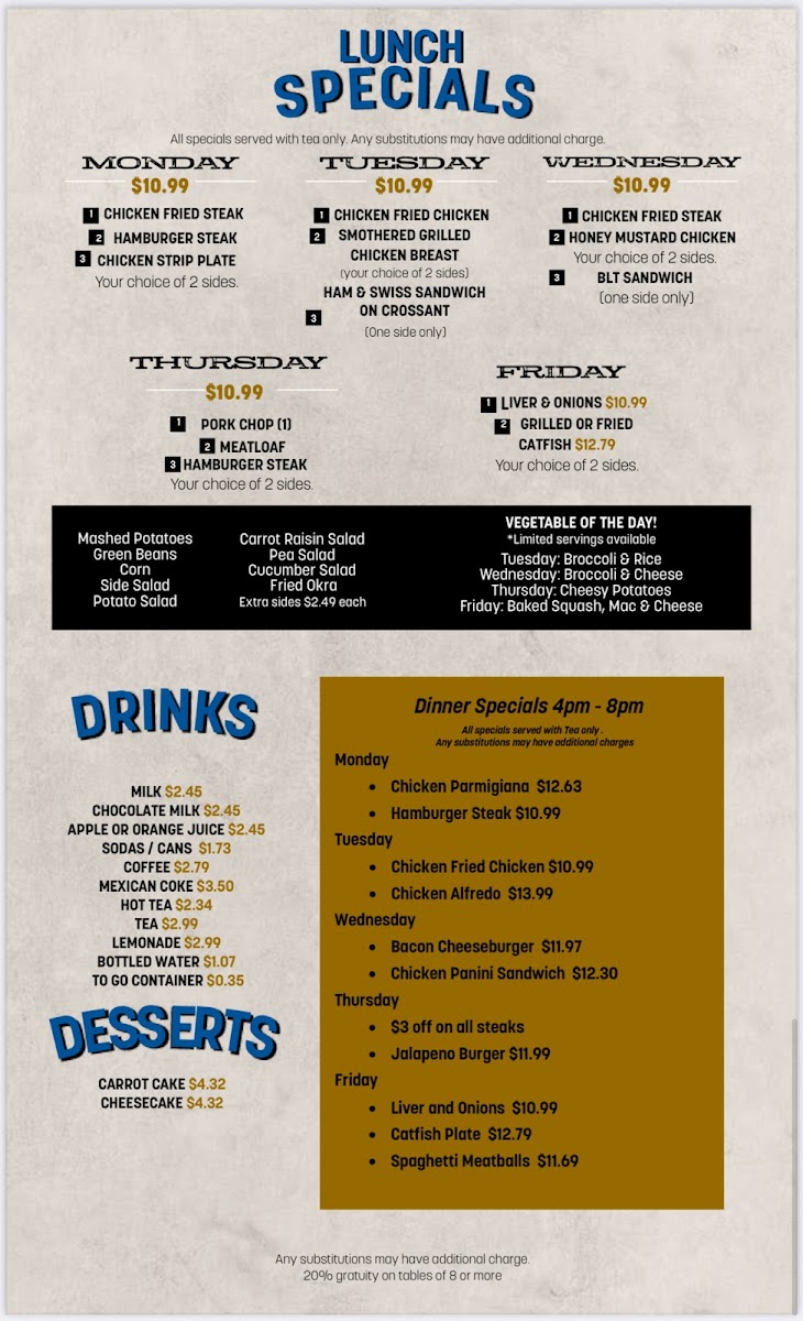 Thursday Lunch Specials (lunch starts 10:30 am)